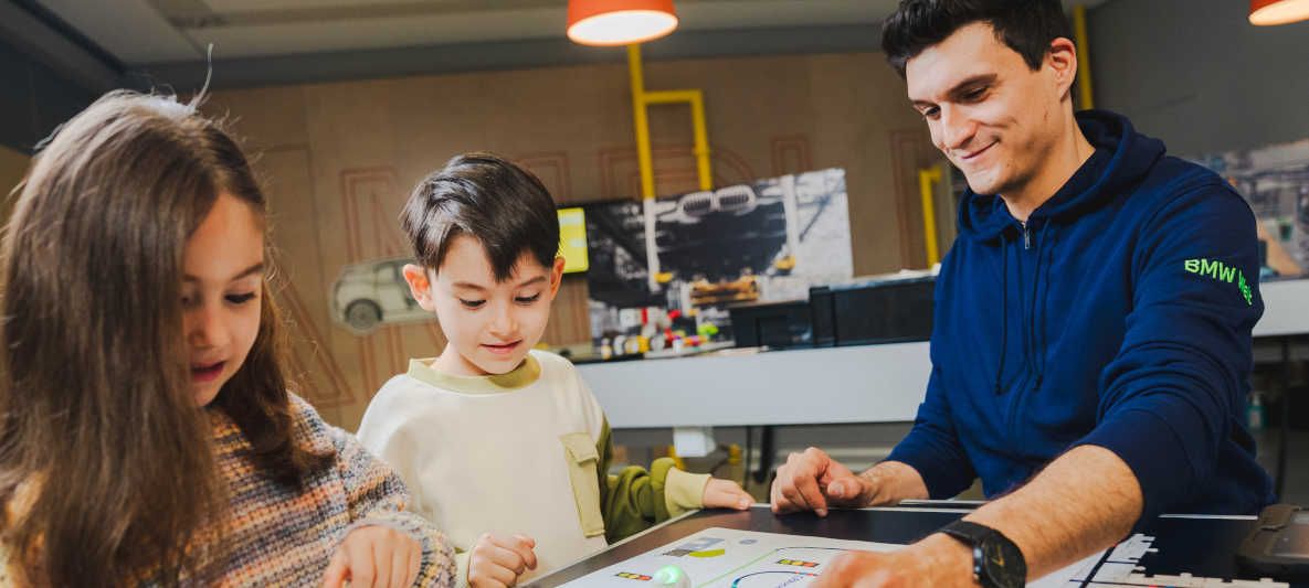 Im Programmierworkshop tauchen die Kinder in das Thema „Coding“ ein und lernen die Sprache der Roboter kennen. Experimente mit innovativen Bausätzen zu verschiedenen Zukunftsthemen und noch vieles mehr, gibt es im Campus der BMW Welt zu erleben.
